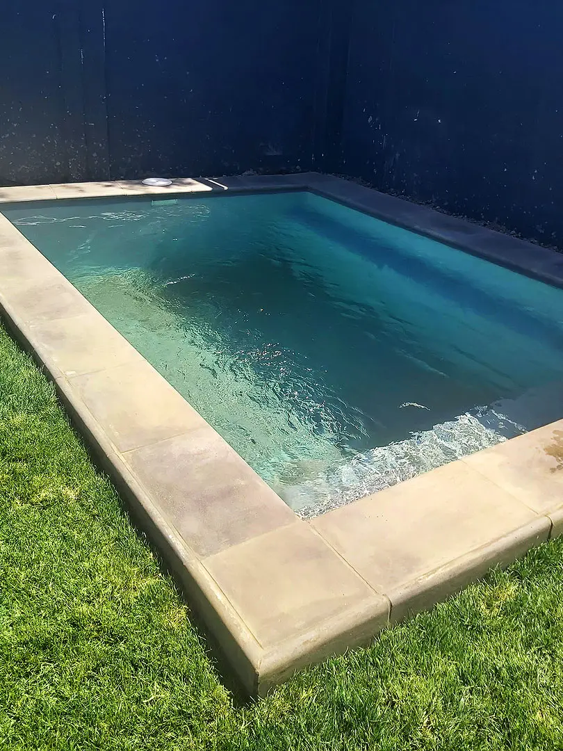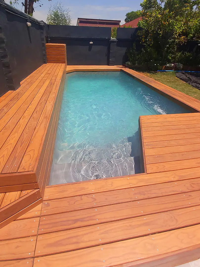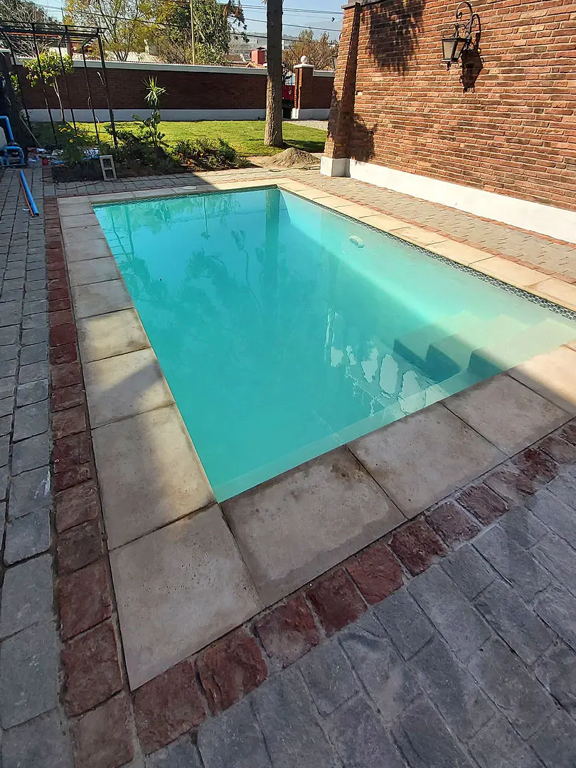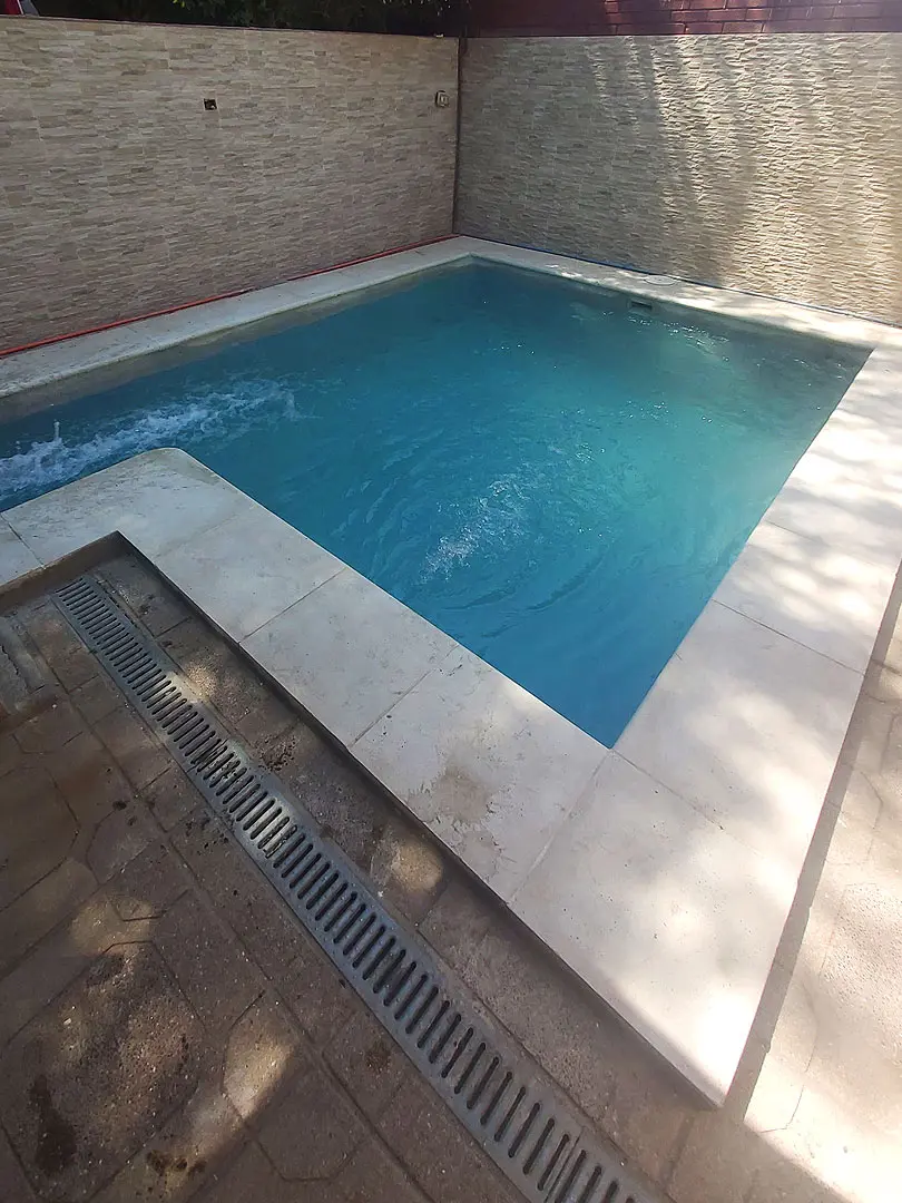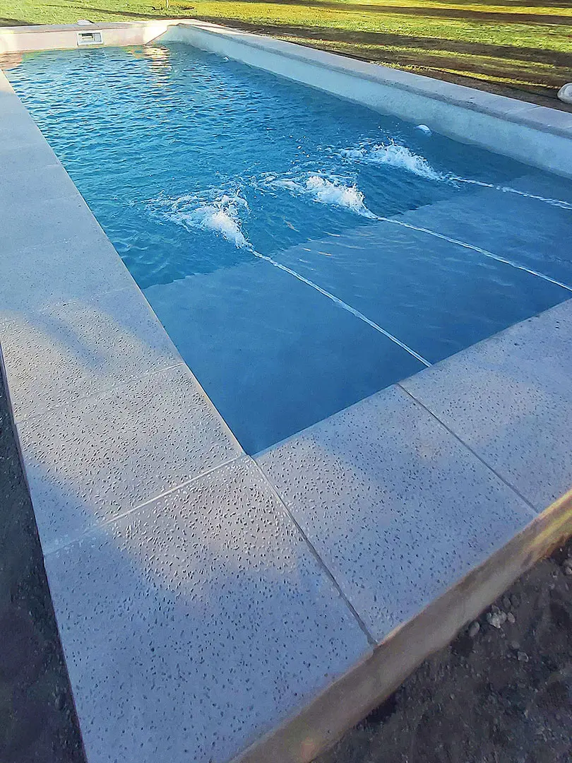 Borde: Piedra reconstituida española atérmica y antideslizante.