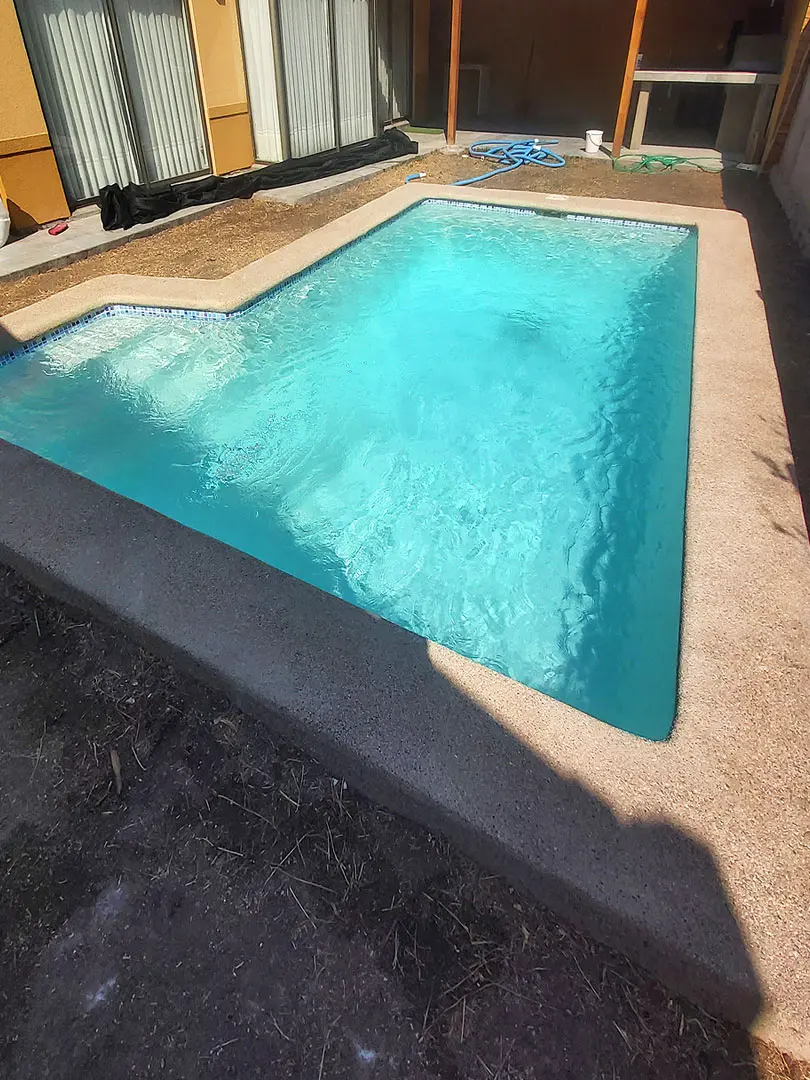 Revestimiento: Retiro revestimiento en fibra de vidrio y aplicación de Marble Dust Extra Cian (Pool Piscinas).